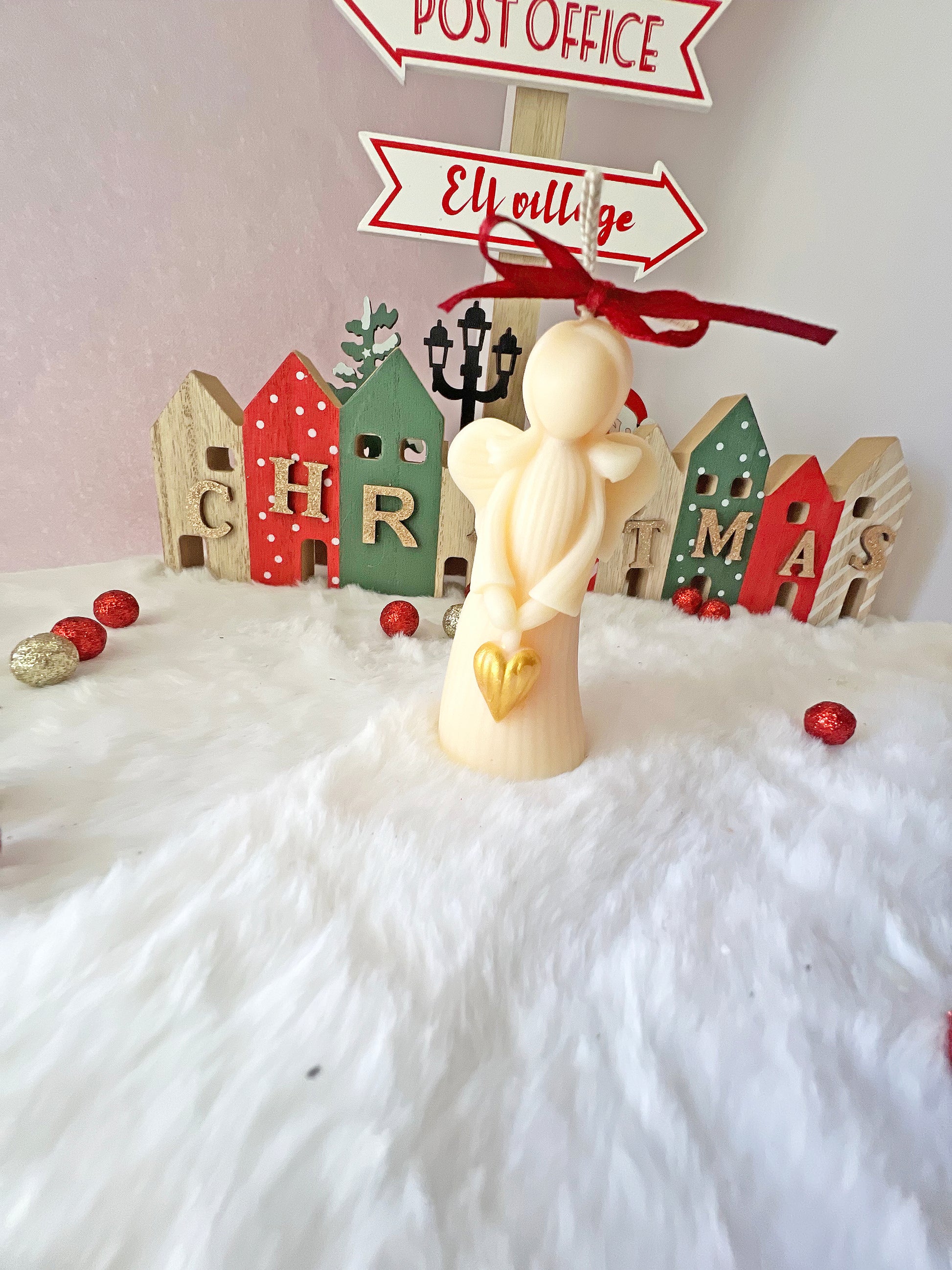 Ένα τρυφερό σύμβολο προστασίας και αγάπης, αυτό το μικροσκοπικό αγγελάκι με χρυσή καρδιά είναι φτιαγμένο από 100% φυτικό κερί ελαιοκραμβής και σχεδιασμένο για όσους αγαπούν τις λεπτές, κομψές γιορτινές πινελιές. Η χειροποίητη υφή του και η απαλή χρυσή λάμψη ως μια ιδιαίτερη παρουσία του, τόσο μικρόκοσμο όσο και ως ευγενικό δώρο.
