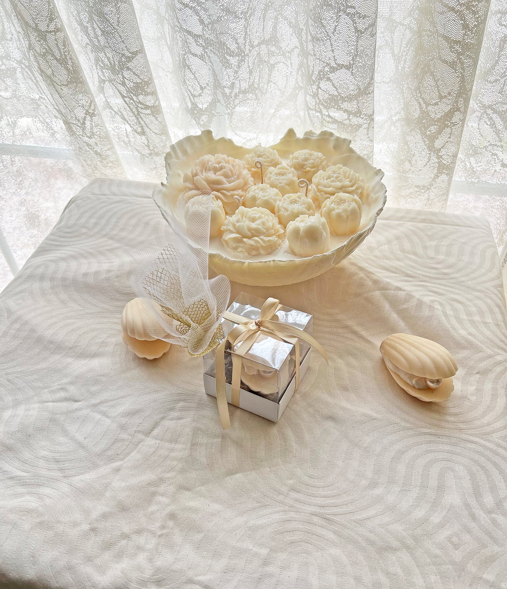 Πολυτελής Μπομπονιέρα “Κοχύλι Μαργαρίτα” – Χειροποίητο Exclusive Φυτικό Αρωματικό Κερί για Γάμο & Βάπτιση