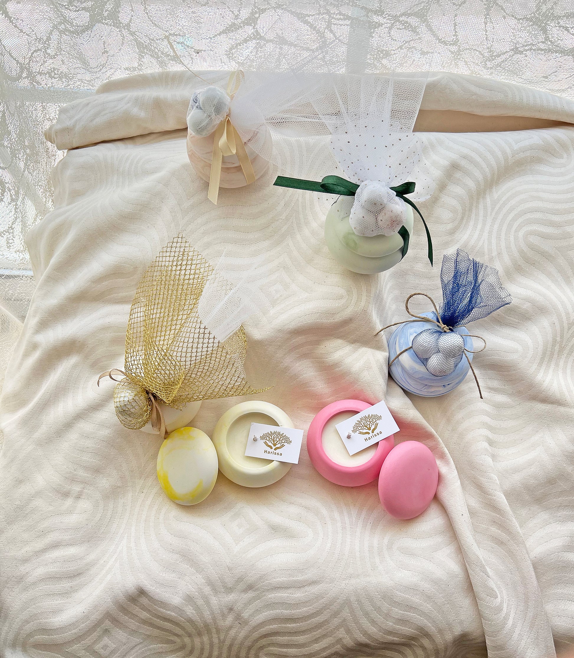 Πορσελάνινο Macaron με Φυτικό Κερί Σόγιας – Luxury Μπομπονιέρα Harissa
