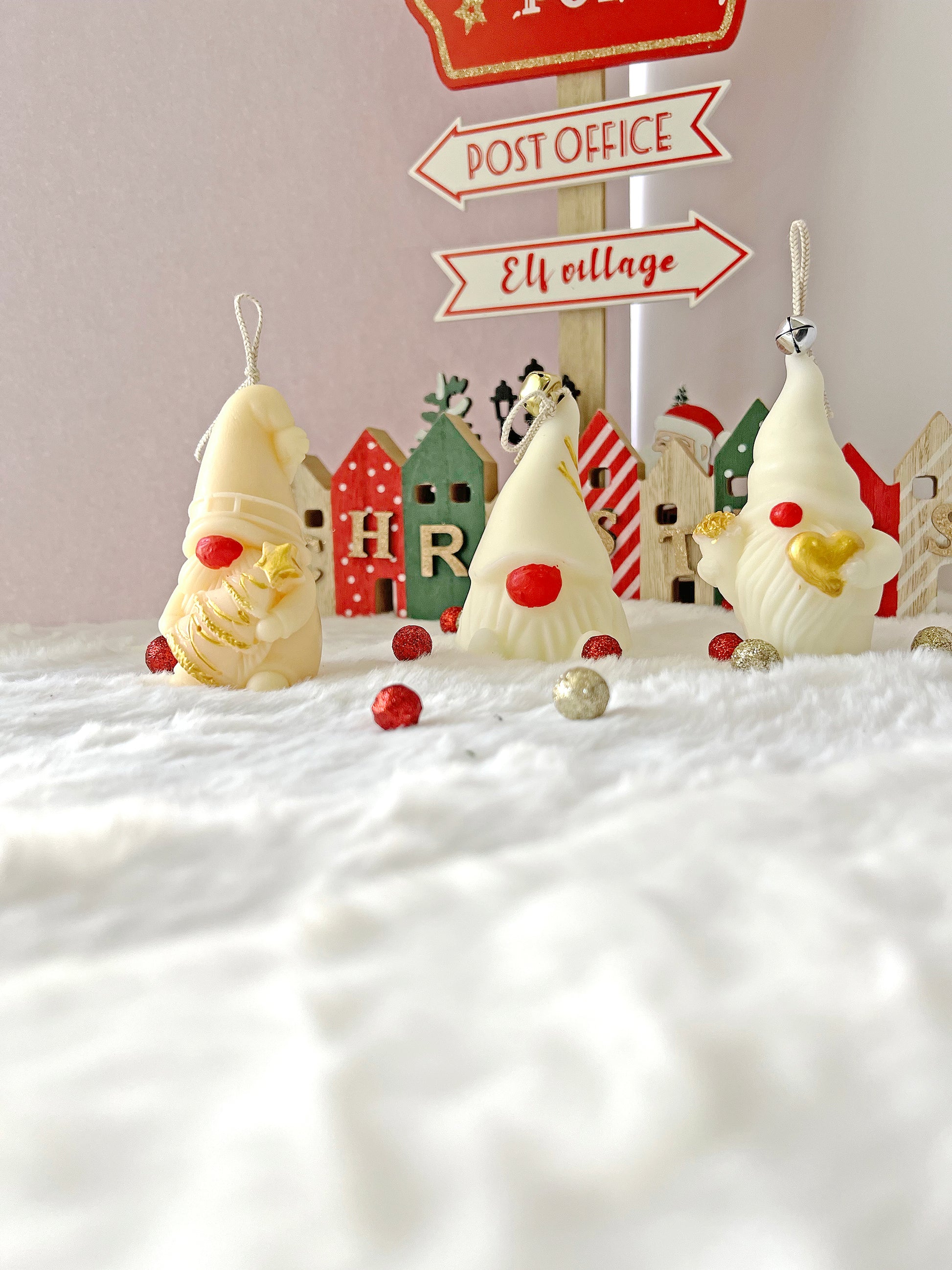 Τρεις μοναδικοί γιορτινοί νάνοι, φτιαγμένοι στο χέρι με προσοχή, φαντασία και γιορτινή διάθεση. Κάθε κερί είναι δημιουργημένο από 100% φυτικό κερί ελαιοκράμβης και premium άρωμα χώρου, προσφέροντας καθαρή, σταθερή και ασφαλή καύση.